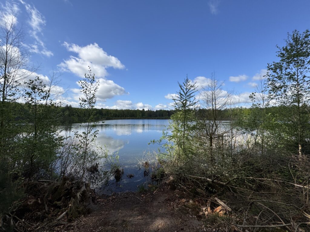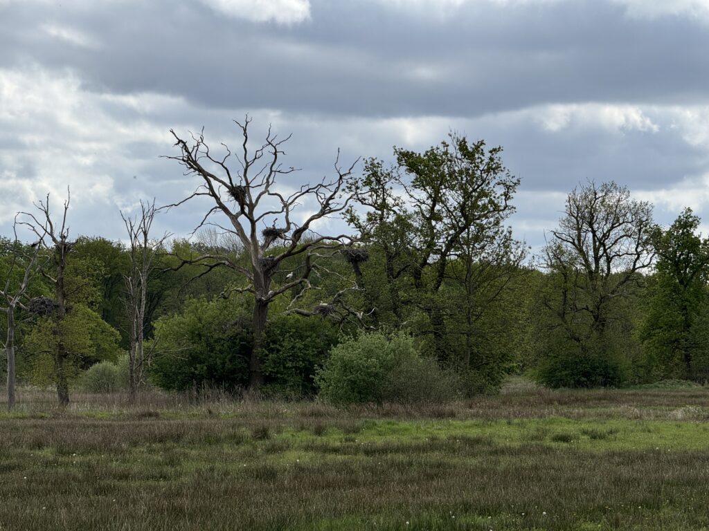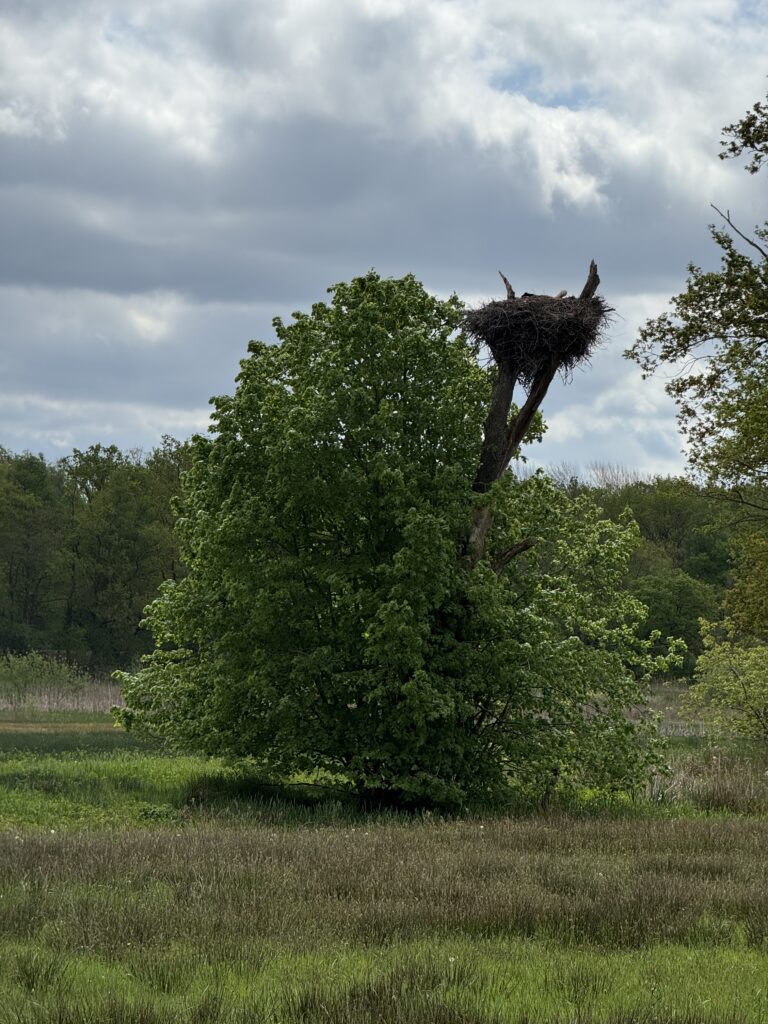 Po chwili odpoczynku przy kawie ruszyłem dalej w park. Las zmieniał się co kilka kilometrów – raz był to jasny bukowy młodnik, innym razem gęsty świerkowy las, a zaraz za zakrętem czekała otwarta przestrzeń porośnięta wrzosem i dzikimi trawami. Mijałem dzikie łąki, samotne ścieżki przez knieje i rozległe pola uprawne. W jednym z miejsc zauważyłem bocianie gniazda – całe kolonie zbudowane wysoko, na drzewach i specjalnych platformach. Widok tych ogromnych ptaków czuwających nad krajobrazem zrobił na mnie spore wrażenie.