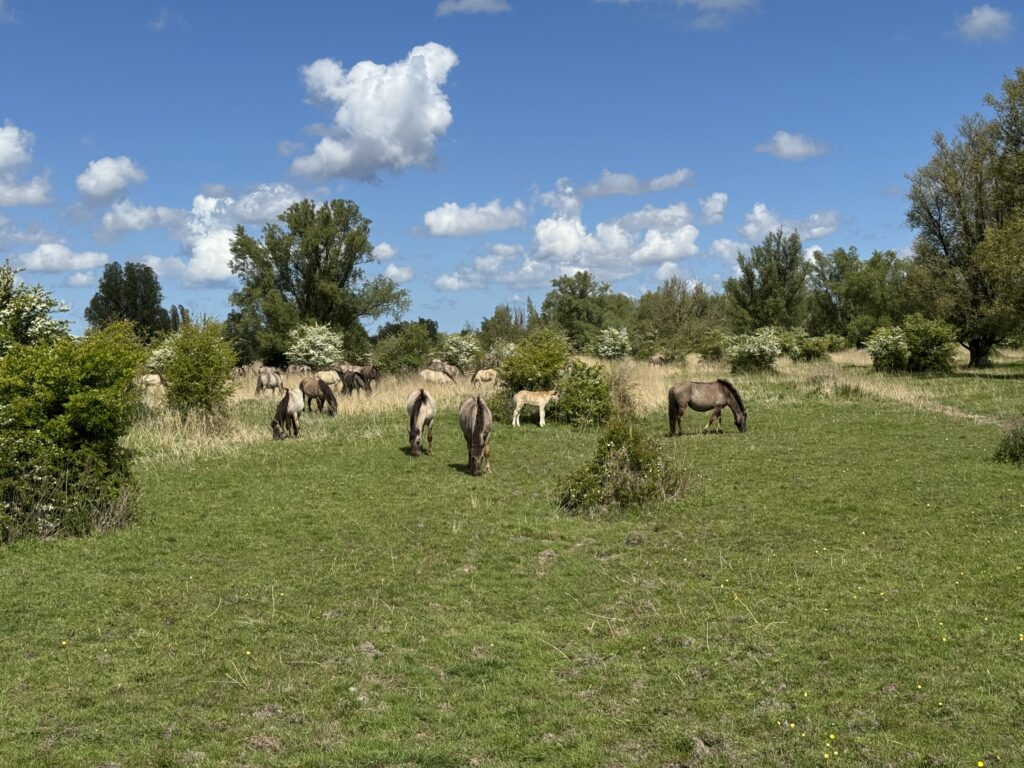 To raj dla ptaków – ponad 100 gatunków znajduje tu schronienie. Na wodach i w trzcinowiskach można wypatrzeć bieliki (symbol parku), gęsi zbożowe, bernikle białolice, a nawet rzadkiego błotniaka stawowego. Na łąkach pasą się dzikie konie koników polskich, które widziałem przy brzegu – spokojne, wolne, pięknie wpisane w krajobraz.