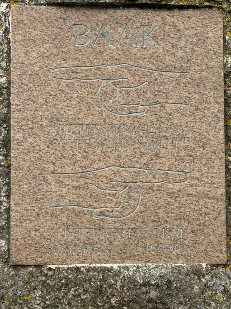 Ten kamień stoi na wzgórzu nieopodal Rolde, w otwartym krajobrazie, gdzie nie ma zbyt wiele do zaczepienia wzroku. A jednak – przyciąga. Tablica z wyrytymi dłońmi wskazującymi kierunki, jak palce czasu. Po jednej stronie: Pietersberg, 445 km stąd. Po drugiej: Pieterburen, 67 km. Dwie skrajności Pieterpadu, najdłuższego pieszo-przemierzanego szlaku w Holandii.